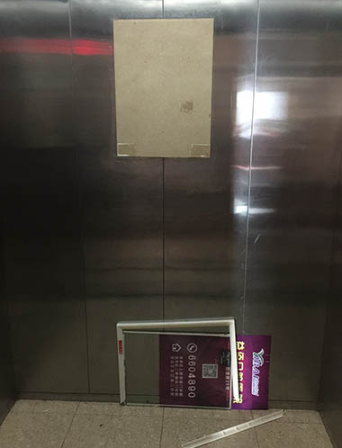 据了解,该小区每部电梯内至少有3块广告牌,由于广告更换频繁,粘贴不牢固,且电梯一直运行,这些广告牌经常脱落,存在严重安全隐患。一旦砸到人的头上或脚上,特别是孩子,后果不堪设想。